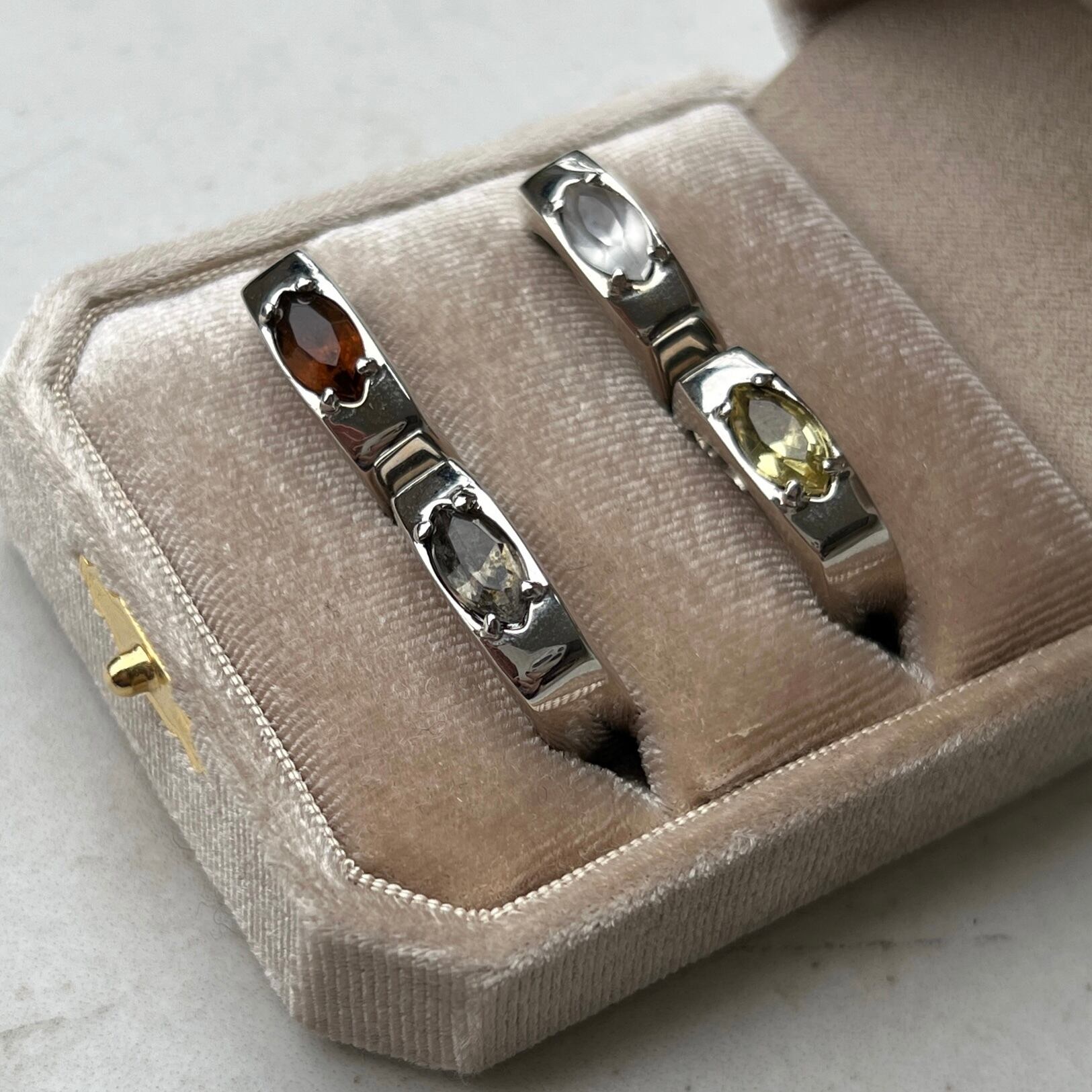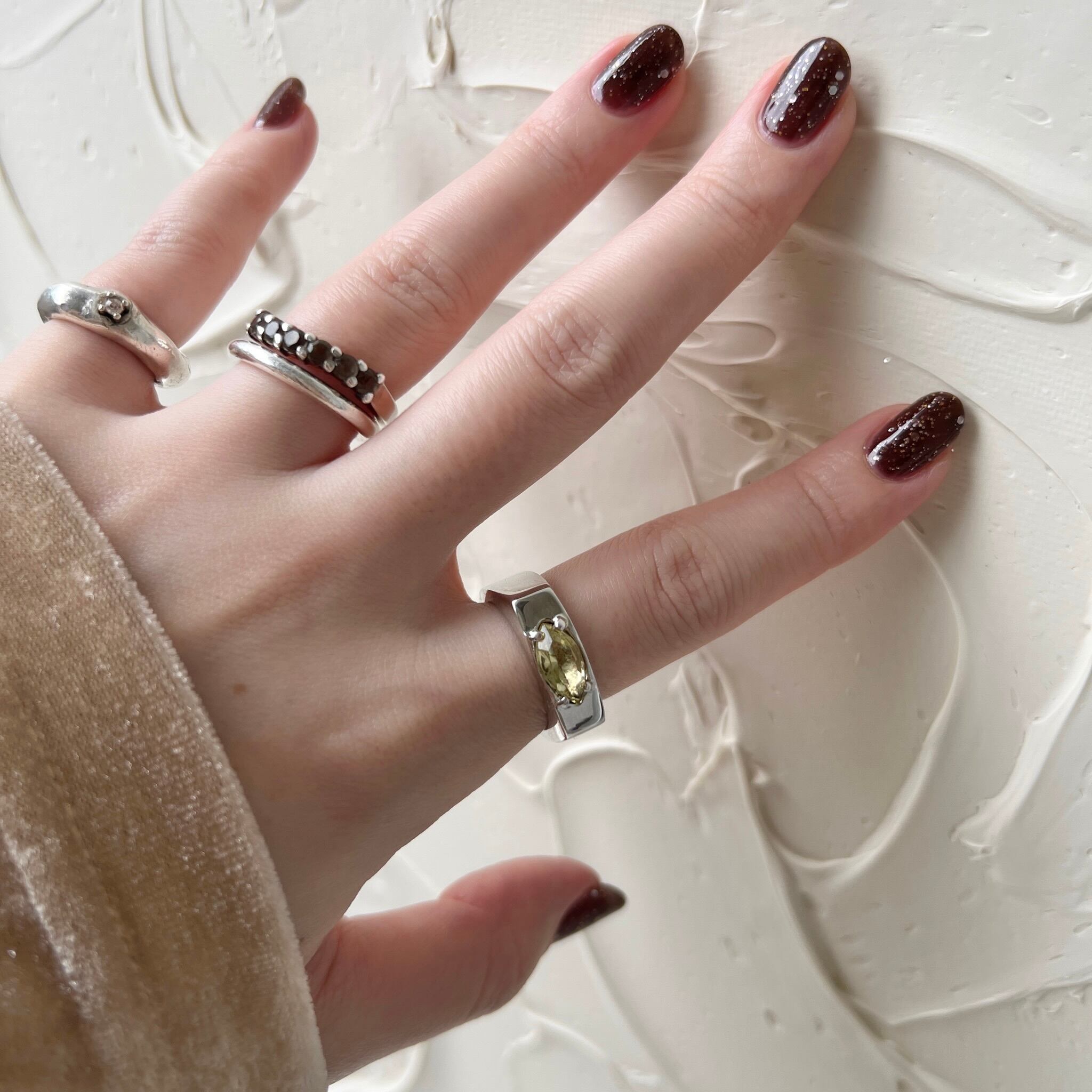 シンプルですが存在感があり、一つだけでも指本に彩りを添えてくれます。