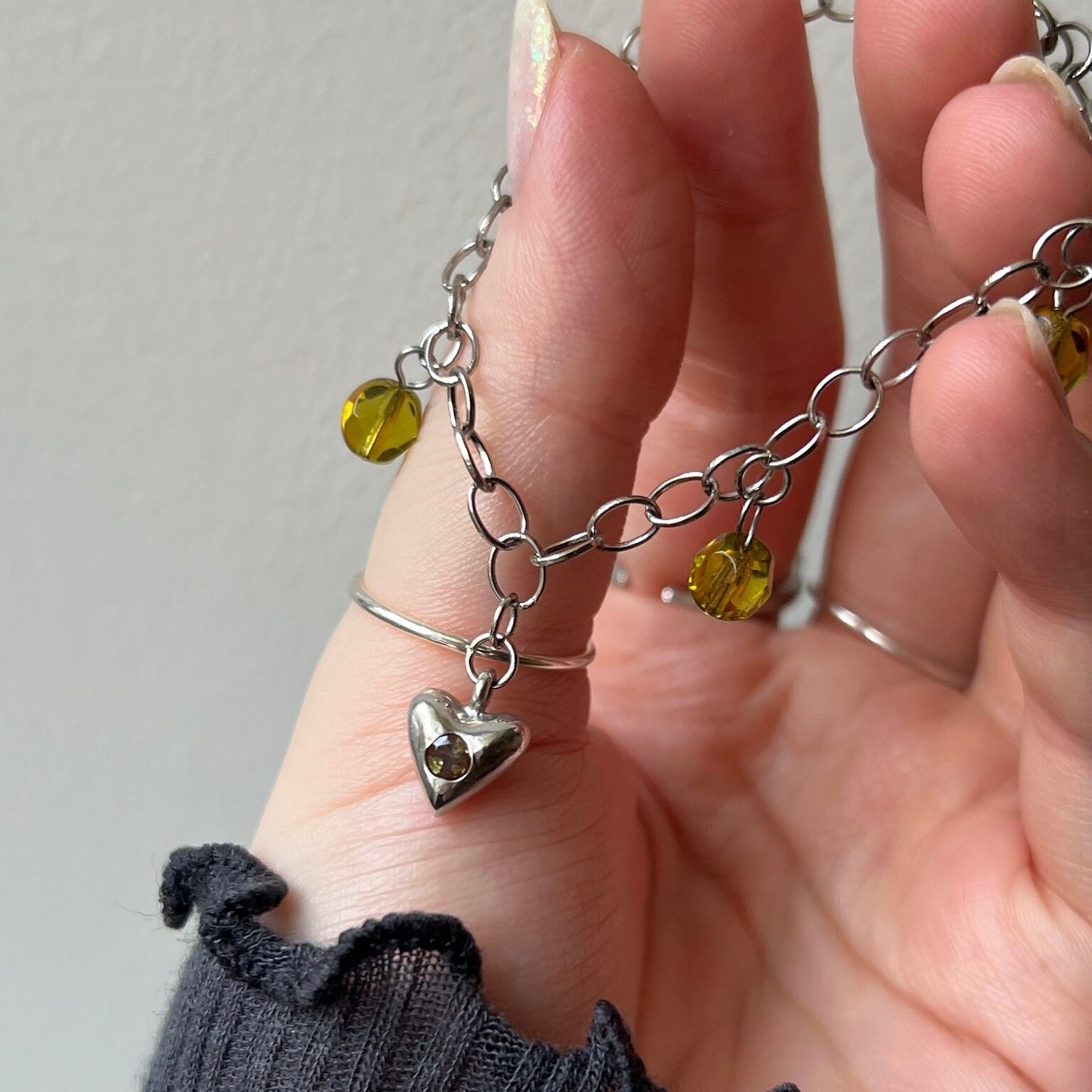 [ andalusite ] heart motif charm bracelet silver [ free size ]
