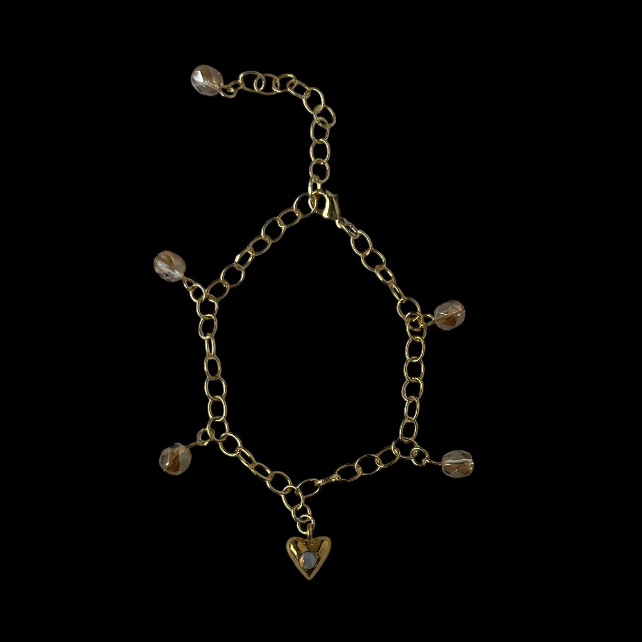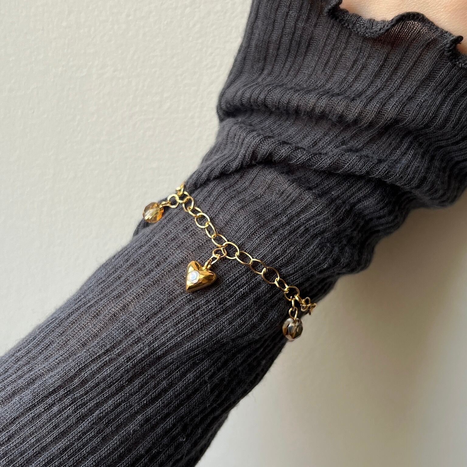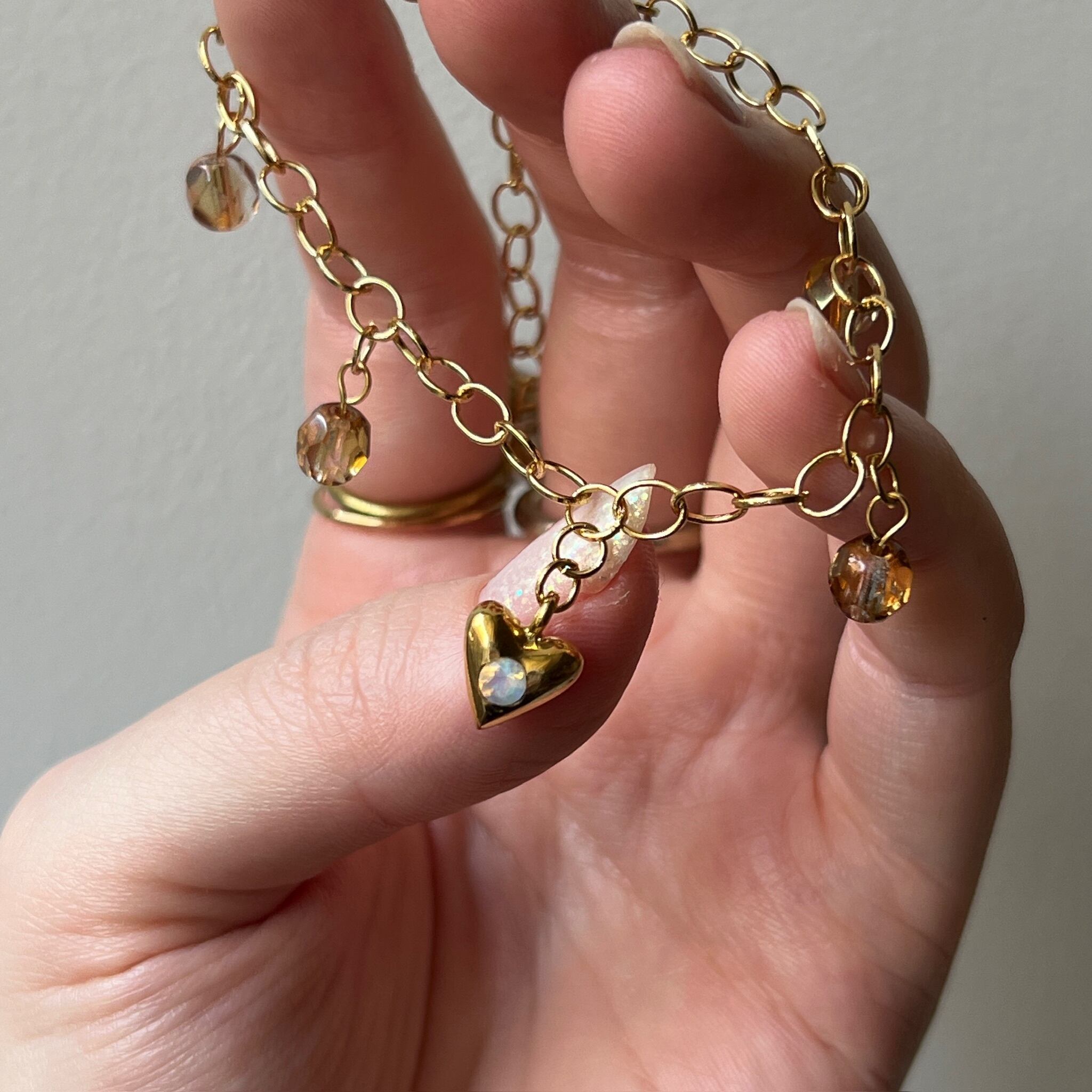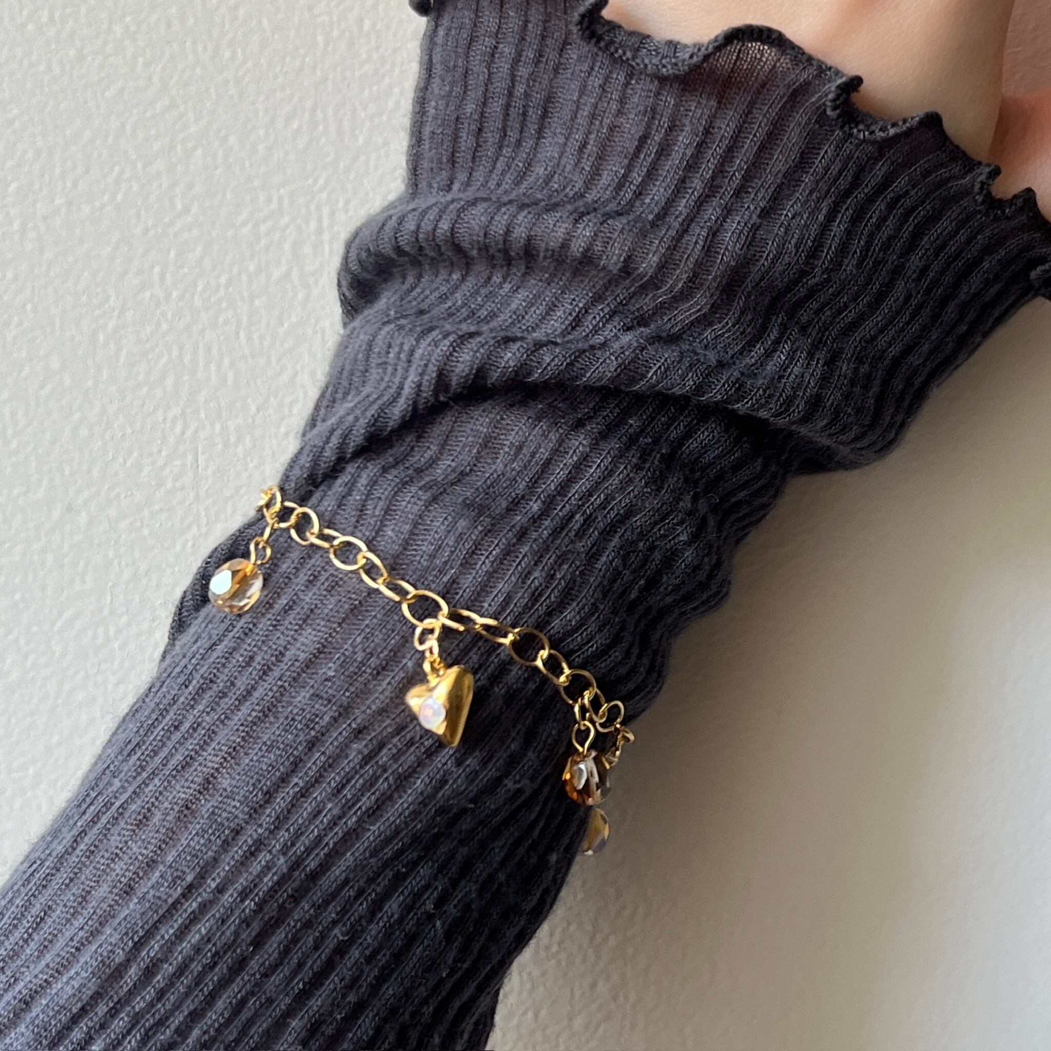[ opal ] heart motif charm bracelet gold [ free size ]