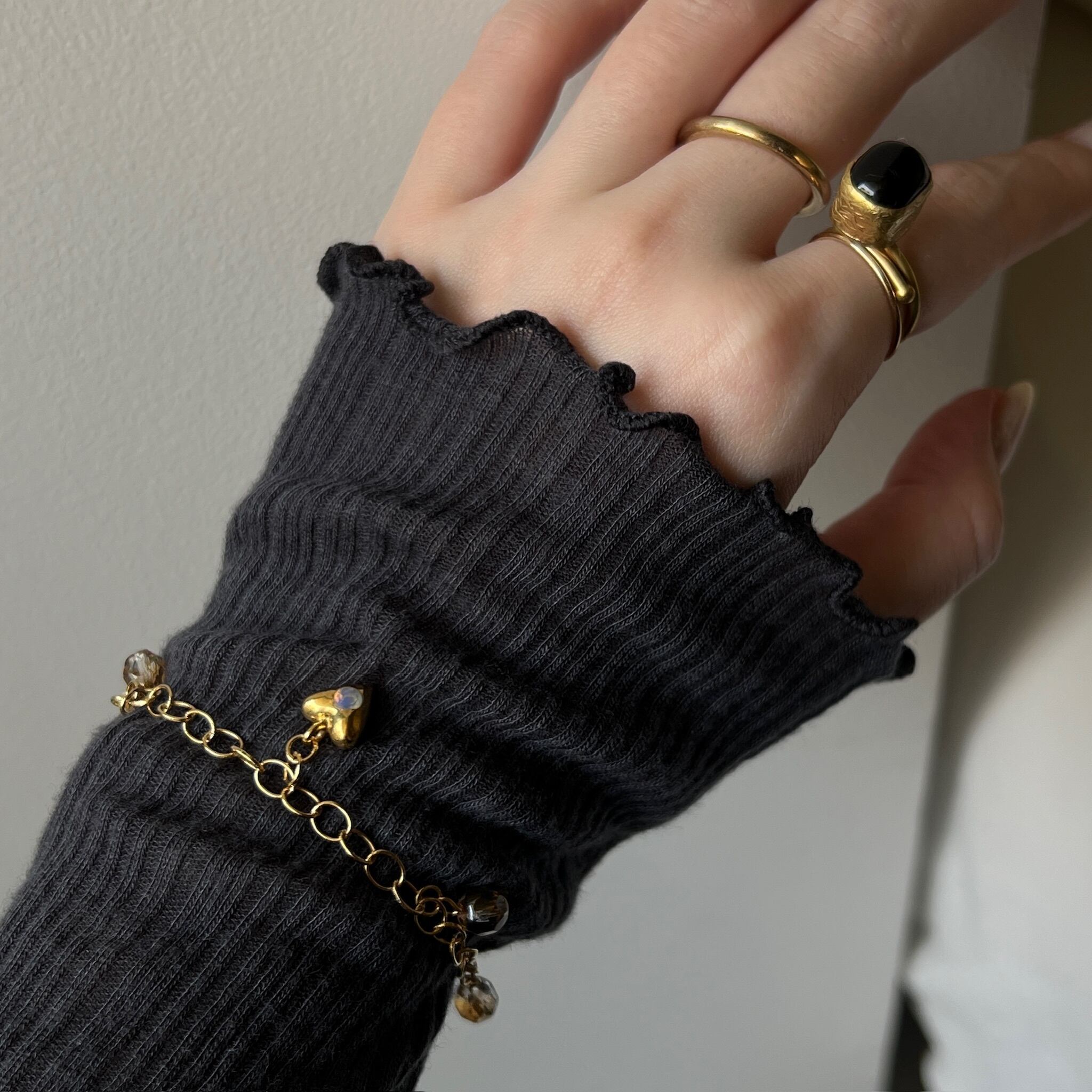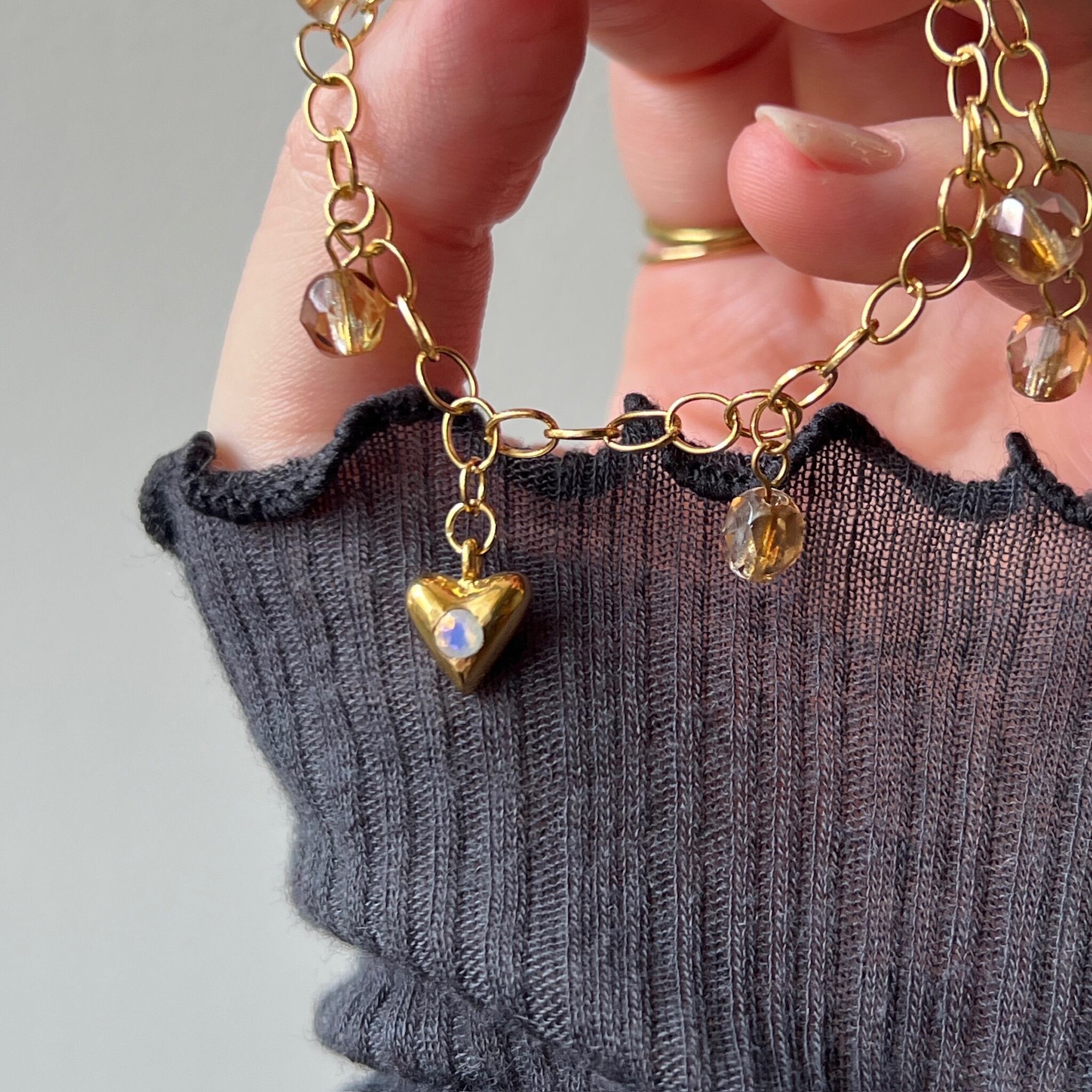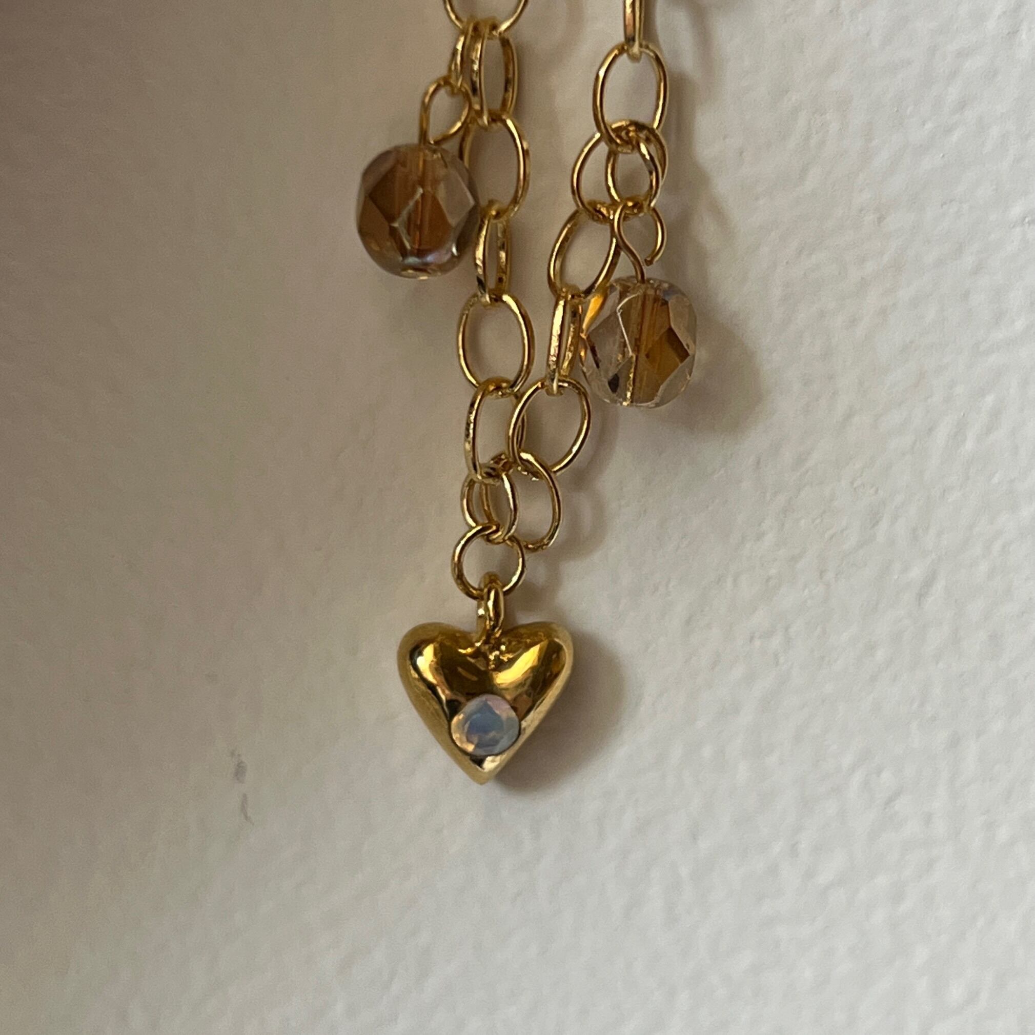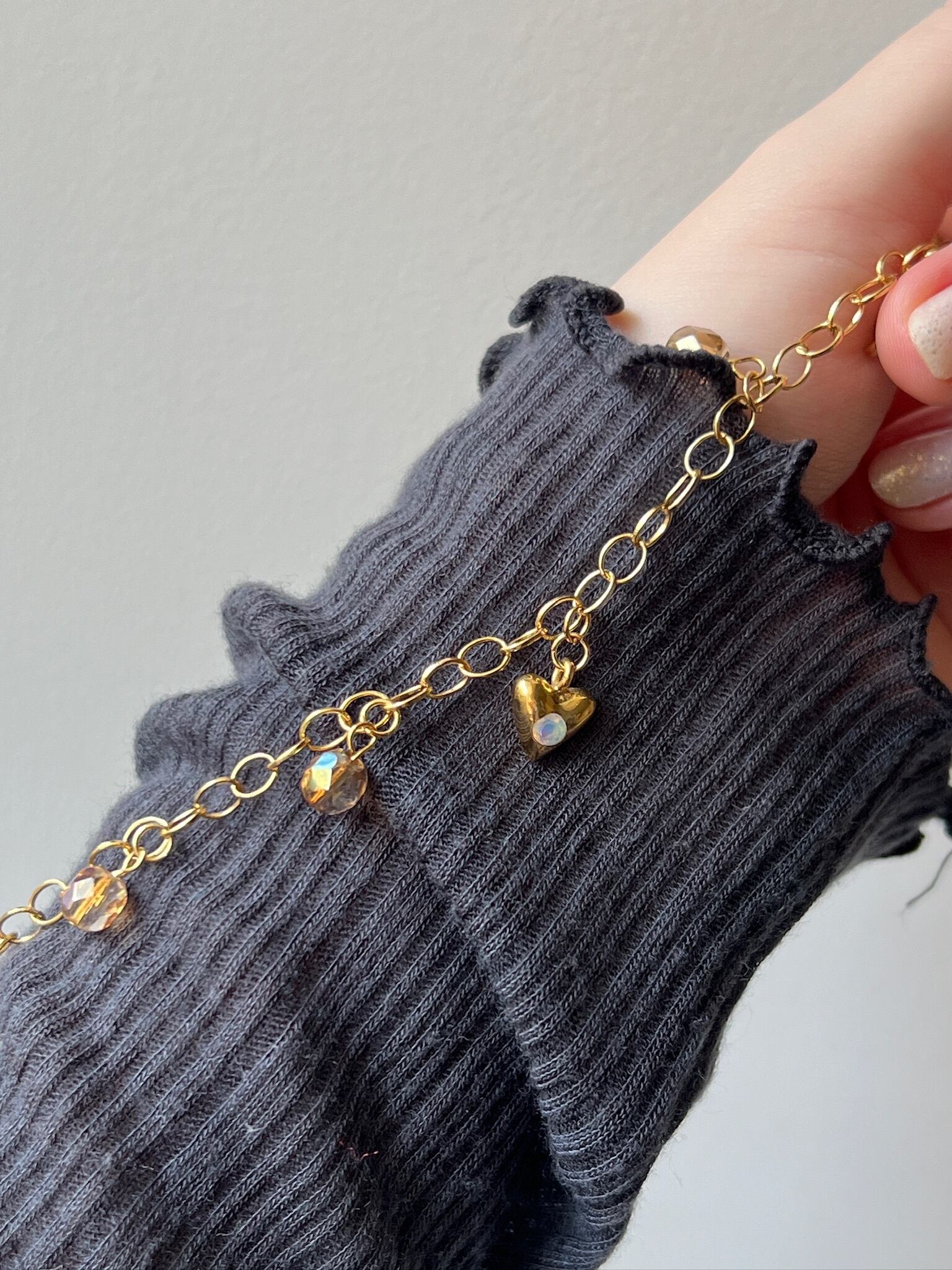 [ opal ] heart motif charm bracelet gold [ free size ]