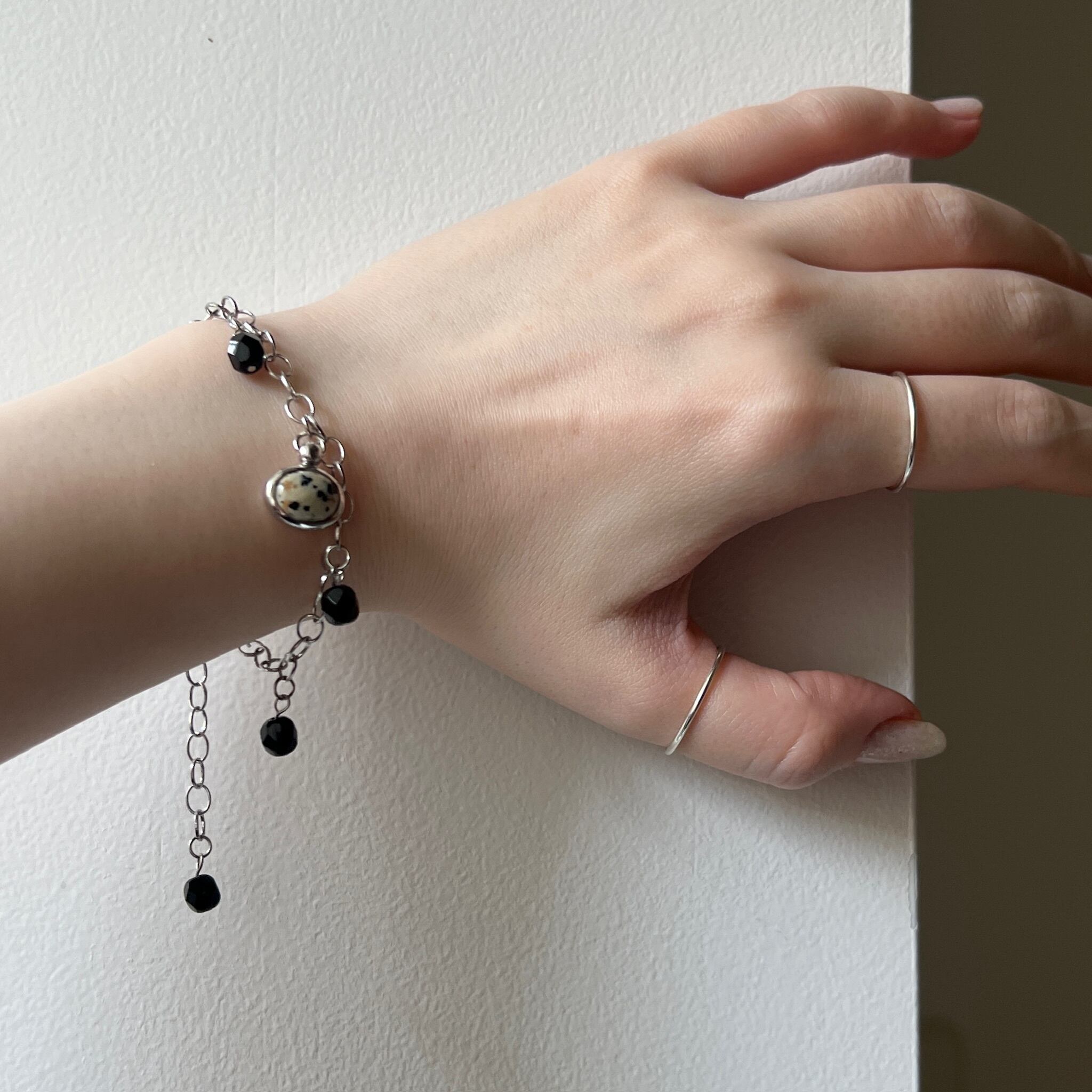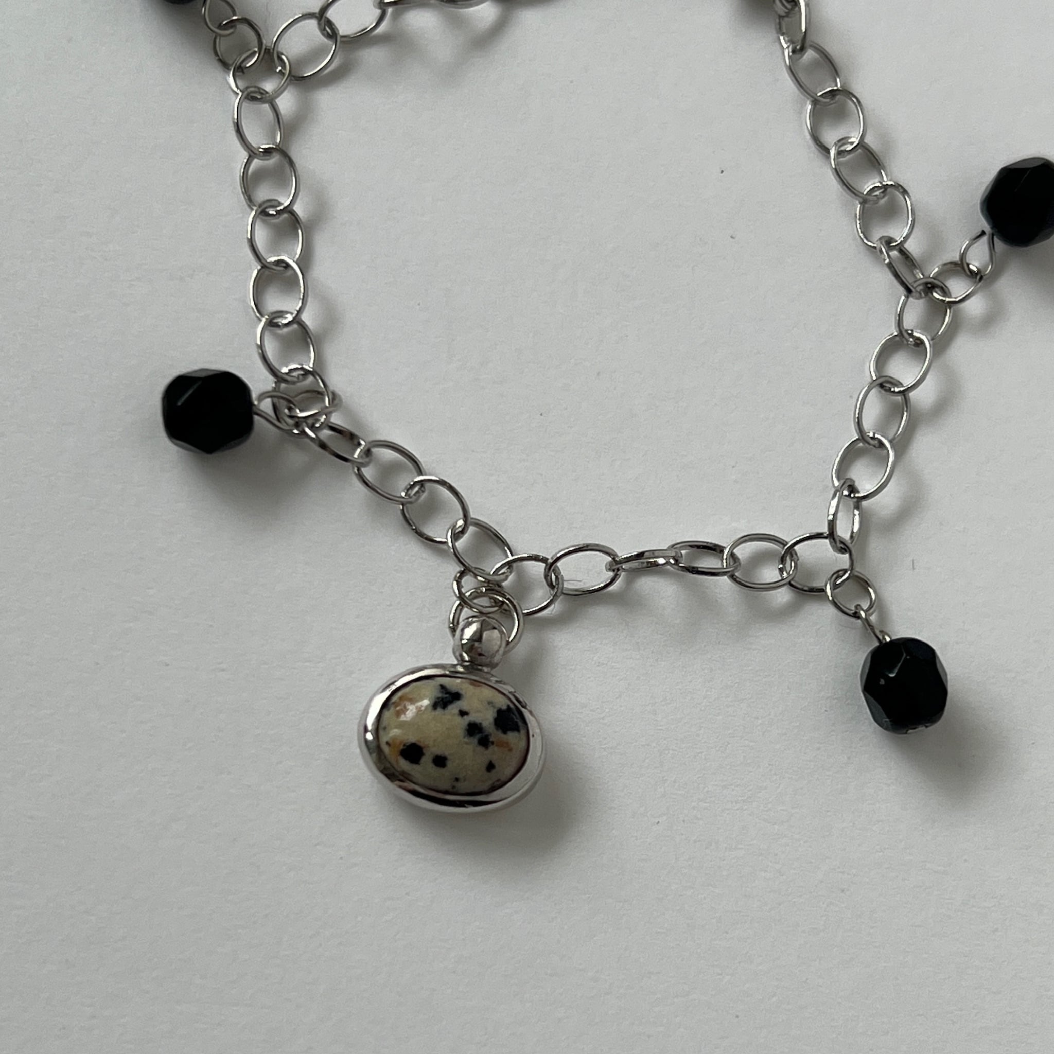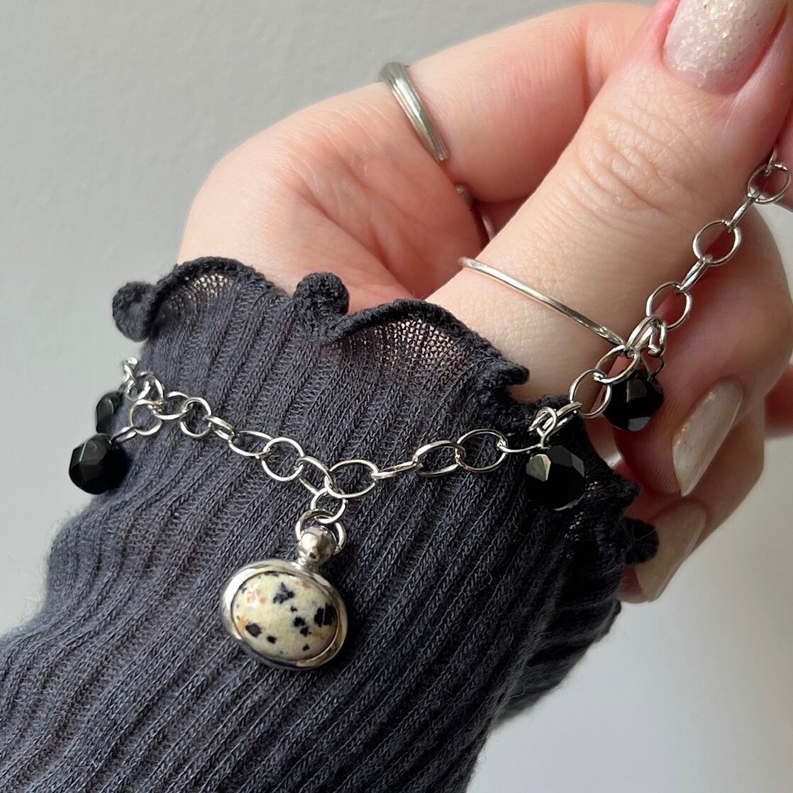 [ dalmatian jasper ] motif charm bracelet silver [ free size ]